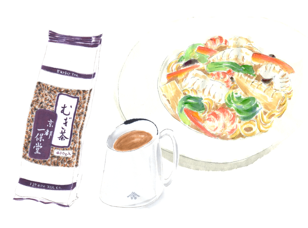 食卓ノート 海鮮焼きそばとむぎ茶。 むぎのやさしい甘さやふくよかな香りがよくわかる常温でいただく全粒タイプのむぎ茶。噛むほどにあふれるイカやエビのうま味がむぎ茶の味わいとちょうど溶け合って良い感じ。 # むぎ茶 # 魚料理 # 麺やごはん カートに入れる 在庫なし 購入点数の制限がございます : 1注文につき点まで むぎ茶400g袋 ¥540 カートに入れる 在庫なし 購入点数の制限がございます : 1注文につき点まで ティーポット ¥3,300 大さじ2.5杯(25g) 熱湯(500㎖) 30分後 シュンシュンに沸いた熱湯を使いましょう 冷めたお湯では、成分がむぎから抽出しにくくなります。