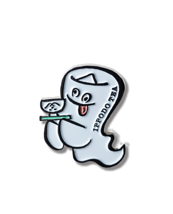ひやかしIPPODO TEAのメインキャラクター、ひやかしちゃんのピンバッジです。ひやかしIPPODO TEAの店内には涼しげな青竹がたくさん使われているのですが、よーく見るとひやかしちゃんが持つお盆の色も若竹色!汲み出し茶碗は王道の白磁茶碗です。ユーモラスなひやかし顔で、リュックにチラリ。洋服にチラリ。今日はどんな持ち物に忍ばせましょう?ふわふわり、ひやかしちゃんが街中を浮遊します。
