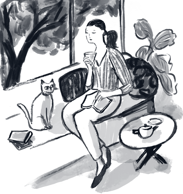 寝る前のひと時、温かいむぎ茶を飲みながら読書を。