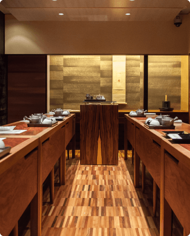 会社や店舗などで開かれるパーティやイベントに一保堂のスタッフが赴き、淹れたてのお茶でおもてなしをいたします。淹れるところからゲストの皆さまがご覧になれるよう、キッチンとなるスペースのしつらいまでご用意いたします。まずは、パーティやイベントのテーマをお聞かせください。テーマに合わせたメニューをご提案いたします。