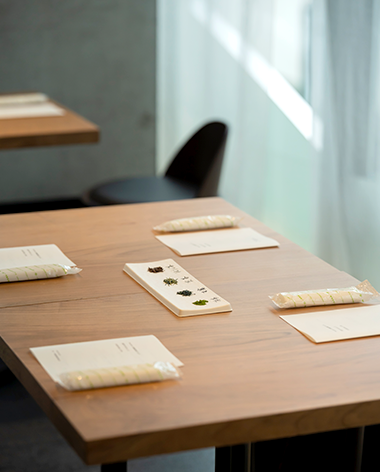 会社や店舗などで開かれるパーティやイベントに一保堂のスタッフが赴き、淹れたてのお茶でおもてなしをいたします。淹れるところからゲストの皆さまがご覧になれるよう、キッチンとなるスペースのしつらいまでご用意いたします。まずは、パーティやイベントのテーマをお聞かせください。テーマに合わせたメニューをご提案いたします。