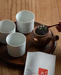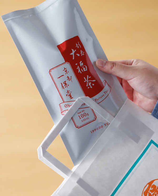 お配り用やご自分用に、複数ストックしておくと便利なお茶。「大福茶」はこの時季ならでは縁起もの、贈りものにも最適です。お渡しの際に重宝する袋もセットにしました。